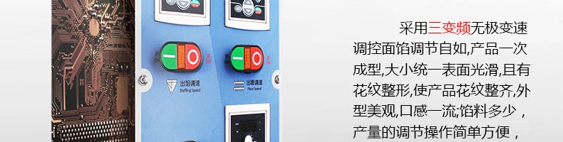 名稱XZ-87包子機 電源220/380V(見機器名牌) 功率2.4kw 產量0-3600個/小時 尺寸1600*720*1600mm 重量390kg 規格20-150克/個 其他