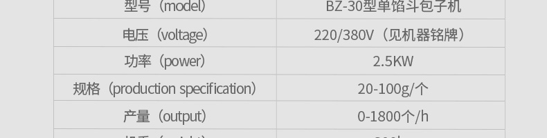 BZ-30型單餡斗包子機,可生產豆沙包、南瓜餅、肉包、小籠包、菜包、圓饅頭、奶黃包、叉燒包、湯包、水晶包等幾十種包餡制品。適用于個體戶、速凍食品廠、學校等各種工作場所。可滿足不同客戶群體。免費提供工藝技術。