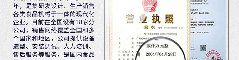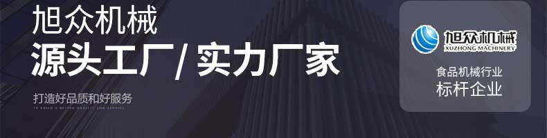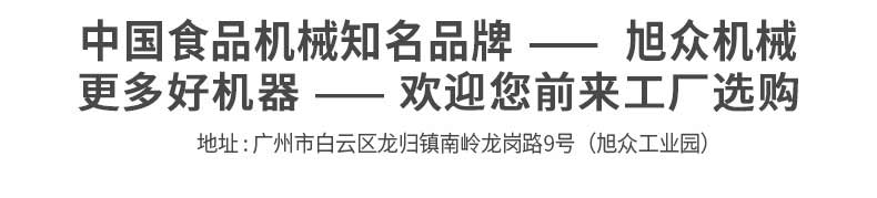 廣州旭眾食品機(jī)械有限公司是一家集科研開發(fā),生產(chǎn)設(shè)計,營銷服務(wù)為一體的現(xiàn)代化生產(chǎn)企業(yè)。現(xiàn)代化生產(chǎn)車間,精湛制造技術(shù),所產(chǎn)機(jī)械歷經(jīng)市場重重考驗,不斷贏得海內(nèi)外客戶的贊譽(yù)。