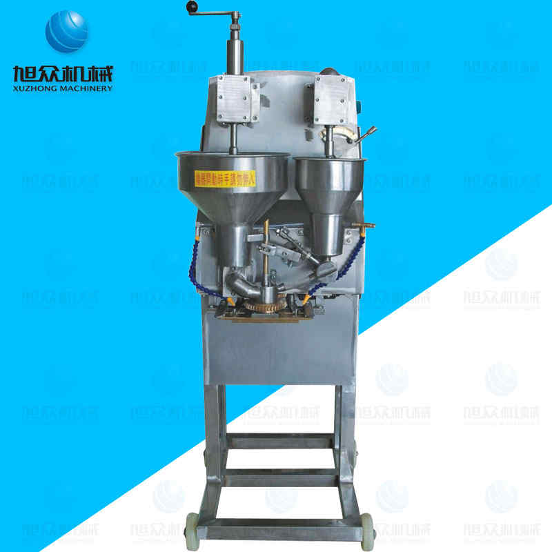 SZ-606包心肉丸機,本機操作簡單,肉餡居中,低破餡,能生產直徑由28-40mm等規格的圓型魚丸肉丸。可生產包心魚丸、包心豬肉丸、撒尿牛肉丸等多種球形醬湯類包餡產品。