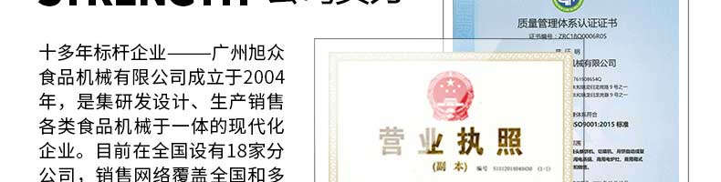 廣州旭眾食品機械有限公司是一家集科研開發(fā),生產(chǎn)設(shè)計,營銷服務(wù)為一體的現(xiàn)代化生產(chǎn)企業(yè)。現(xiàn)代化生產(chǎn)車間,精湛制造技術(shù),所產(chǎn)機械歷經(jīng)市場重重考驗,不斷贏得海內(nèi)外客戶的贊譽。
