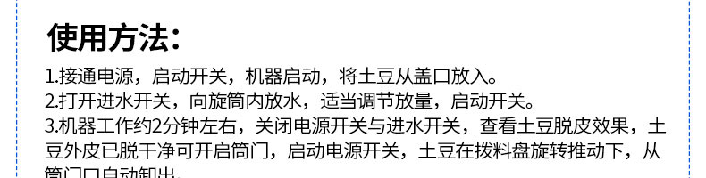 名稱pp350薯仔脫皮機 電源220/380v 功率1.5kw 產量 尺寸900*550*920mm 重量110kg 規格 其他