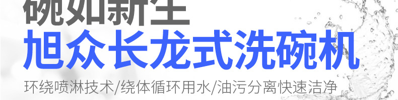 XZ-4800長龍式洗碗機,碗如新生,旭眾長龍式洗碗機。環繞噴淋技術繞體循環用水/油污分離快速潔凈。食品級304不銹鋼堅固耐用,耐高溫抗腐蝕,易于清洗,安全有保障。