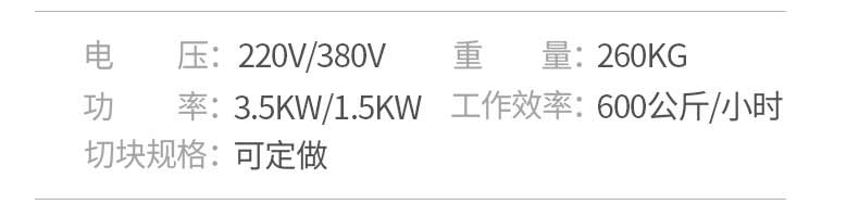 名稱禽類剁塊機 電源220v/380v 功率3.5kw/1.5kw 產量600公斤/小時 尺寸1300*700*850mm 重量260kg 規格可定做 其他