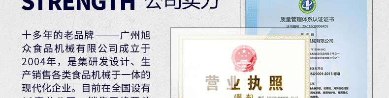 廣州旭眾食品機械有限公司是一家集科研開發,生產設計,營銷服務為一體的現代化生產企業。現代化生產車間,精湛制造技術,所產機械歷經市場重重考驗,不斷贏得海內外客戶的贊譽。